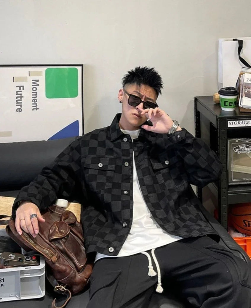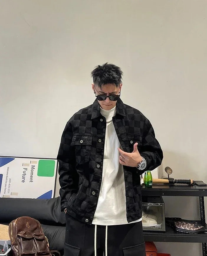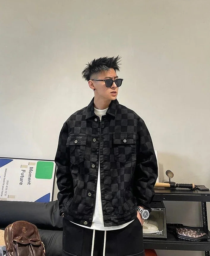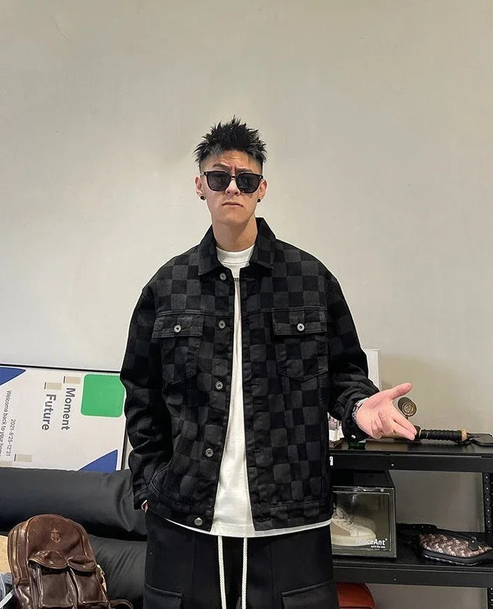 Upgrade your wardrobe with the Men's Denim Jacket featuring a bold plaid design, perfect for autumn and winter. This stylish jacket combines the rugged charm of denim with the trendy appeal of plaid, creating a versatile piece that works for any casual occasion. The jacket's design is tailored for men with wide shoulders, ensuring a comfortable, flattering fit. Ideal for layering, it offers warmth and style with its durable fabric, making it perfect for the colder months.
